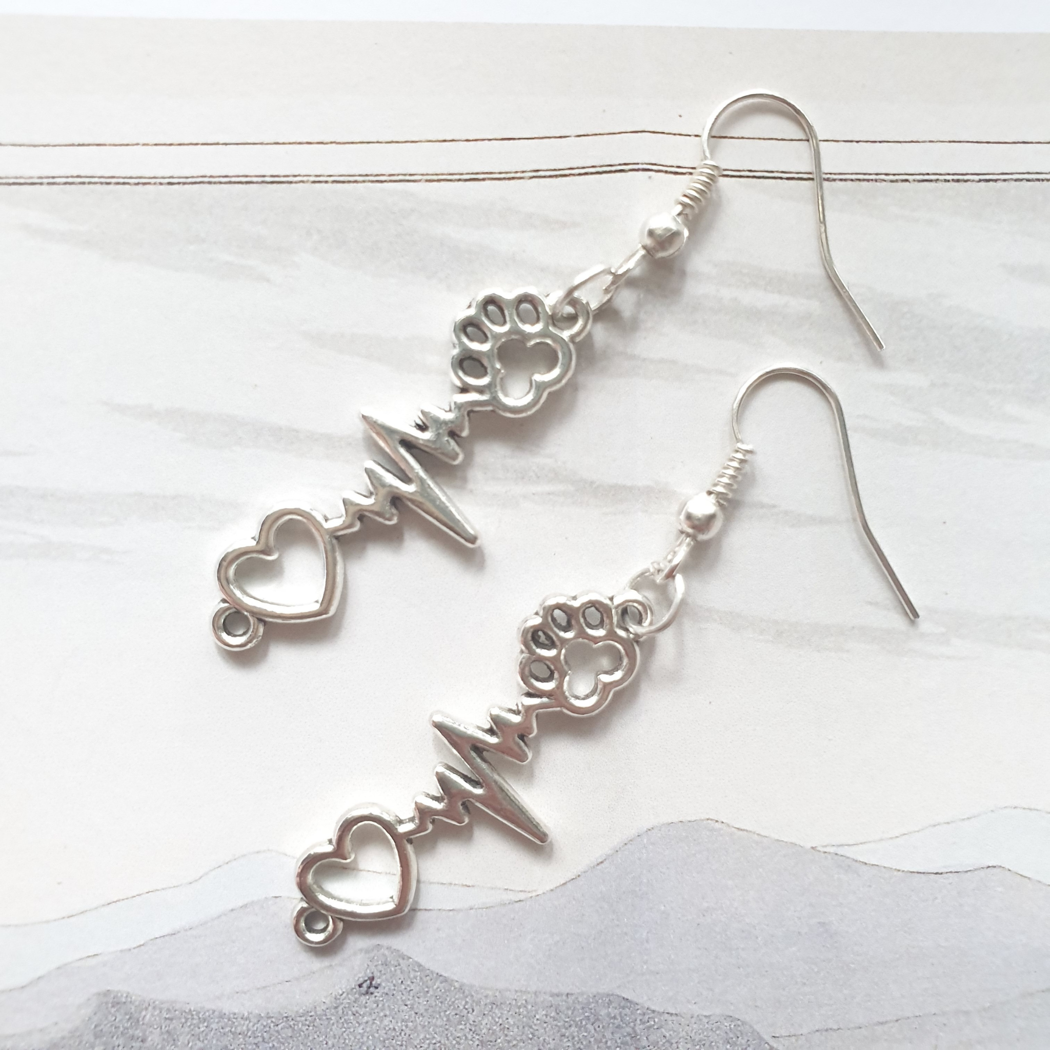 Aros con un corazón, una huellita y una señal de electrocardiograma.